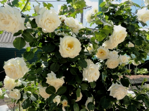 Эта красивая плетистая роза популярна в западной Европе и Скандинавии. У Schneewalzer 87 крупные цветки, по форме напоминающие чайно-гибридные розы. Едва раскрывшись, они очень бледно-лимонные, с жемчужно-розовым центром, позднее становятся чисто белыми. Появляются обычно по одному на длинных стеблях, иногда по 2-3. Побеги с цветами не жесткие, а изящно изгибаются в стороны, и цветки поникают, так что снизу их хорошо видно. Листва темная, устойчивая к заболеваниям, куст сильнорослый, ветвистый. Цветки густомахровые, появляются практически без перерыва все лето. Они повреждаются дождем.