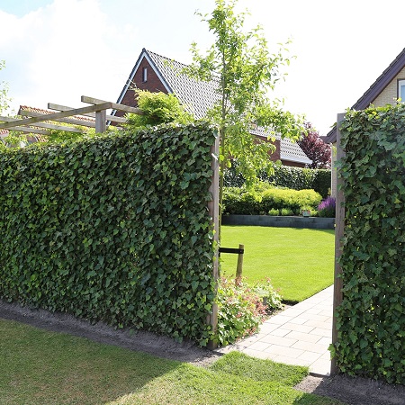 Вечнозеленая лиана, стелющийся или вьющийся с помощью корней-присосок на стенах, деревьях и камнях на высоту до 4-5 м, сначала коренастый и медленнорастущий, позднее растёт быстро. Листья 8-12 см. в длину, плотные, сердцевидной формы тёмно-зелёные с белым жилкованием. Цветёт осенью, при созревании к следующей весне ягоды чернеют и содержат бледно-жёлтые семена. Плоды несъедобны