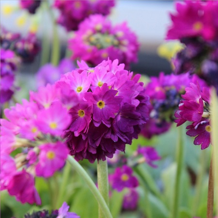 Примула зубчатая Alba (Алба)Просо Dewey Blue (Дьюи Блю)
