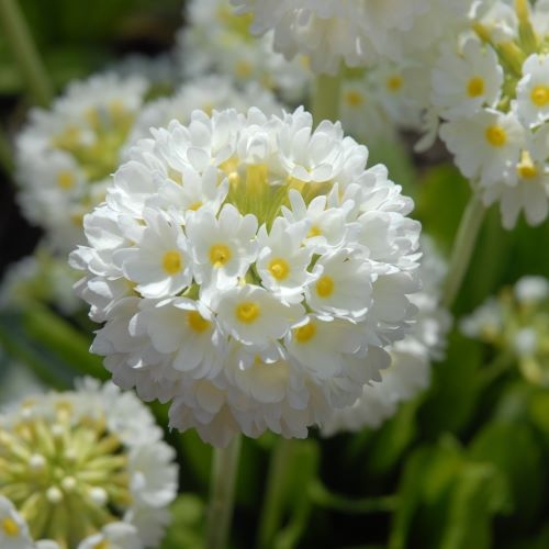 Многолетнее травянистое растение высотой 15-25 см. Цветки белые, диаметром около 3-4 см, собраны в плотные шаровидные соцветия. Листья зеленые, продолговатые, зубчатые, образуют розетку у основания. Цветение происходит с марта по май и длится 30–40 дней.