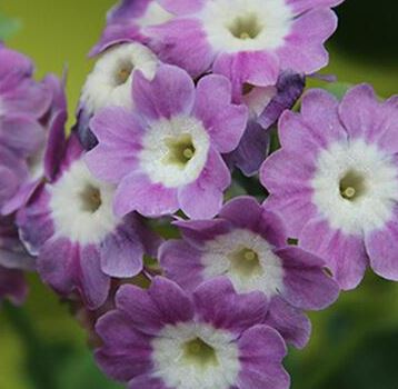 Кусты примулы ушковой достигают высоты 20-25 см. Листья всегда зеленые, плотные, кожистые и темно-зеленые. Цветонос может достигать высоты 20 см. Цветки простые, светло-сиреневые с белым центром, собранные в многоцветковое зонтиковидное соцветие. Примула цветет очень долго, с конца апреля до сентября. Она предпочитает хорошо дренированные влажные почвы и тенистые места летом.