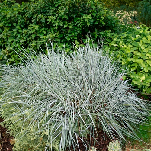 Просо горькое Dewey Blue (Panicum amarum) Цветение: в августе и сентябре. Внешний вид: растение с фонтановидными листьями высотой 90–120 см, которые имеют сизо-голубой оттенок, будто присыпаны пудрой. Цветоносы достигают высоты 120–150 см. Размер проса зависит от плодородности почвы и уровня влажности. Соцветия очень маленькие, с голубым отливом.