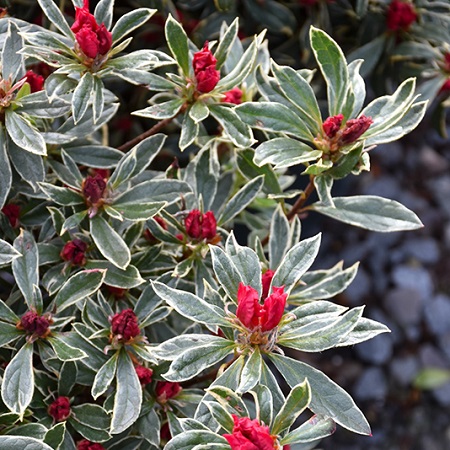 Низкий компактный куст высотой 40-60 см и такой же шириной. Обильно цветет с мая до середины июня. Цветок розовый, колокольчатой формы. Листья эллиптические неправильной формы, длиной 3,6-5 см, глянцевые, пёстрые бело-зелёные Латинское название: Rhododendron obtusum Silver Sword Особенности выращивания: Нуждается в кислых, плодородных и постоянно влажных (но не заболоченных) почвах. Высаживается в тень или полутень. Для лучшего роста и развития используйте удобрения для рододендронов и азалий, или вересковых растений. У азалий мелкая корневая система, поэтому для сохранения влаги в почве. Рекомендуем укрытия на зиму. Применение: Используют в одиночных и групповых посадках.