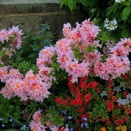 Использование: наиболее эффектно рододендроны выглядят свободно расположенными группами. Посадки желательно размешать по краям газонов, вблизи дорожек и тропинок. Поскольку рододендроны относятся к влаголюбивым растениям, то их лучше всего высаживать вблизи водоемов: прудов, бассейнов, фонтанов, где в летнее время благодаря повышенной влажности воздуха и умеренной температуре условия наиболее благоприятные. Растений должно быть не меньше 3, причем, под каждое следует выделить не менее 1 кв.м. При отсутствии взрослых экземпляров можно использовать загущенные посадки молодых с расчетом, что по мере роста они будут разрежены.