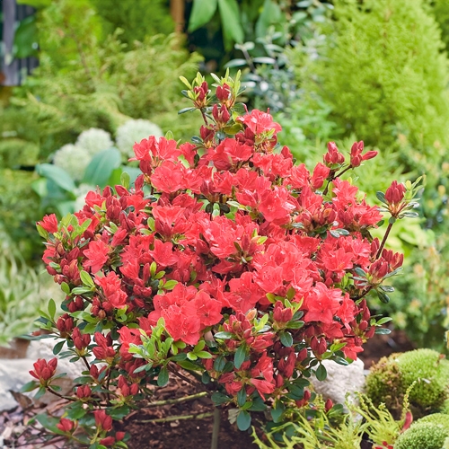 Рододендрон тупой Fridoline — изысканный и надёжный сорт, который сочетает богатое яркое цветение с вечнозелёной декоративностью. Его алые соцветия становятся центром внимания весной, а аккуратная форма и блестящая листва украшают сад в течение всего года.