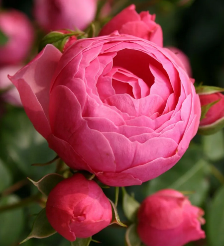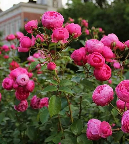 Сильнорослая клумбовая роза, обильноцветущая, очень устойчивая к заболеваниям, с цветками, напоминающими помпоны в стиле старинных роз. Цветки темно-розовые, шаровидные, в кистях по 5-7 шт. Листва темно-зеленая, густая, слегка блестящая. Куст прямостоячий, ветвистый, до 80 см высотой.