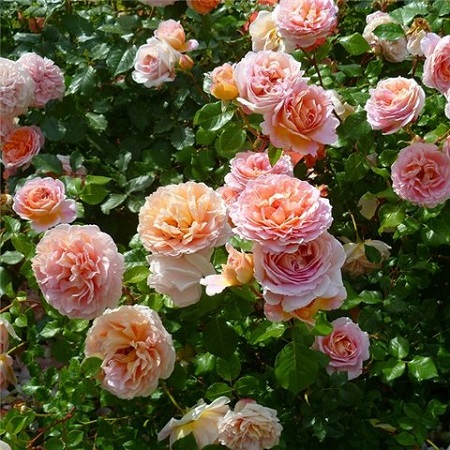У этой популярной английской розы махровые, чашевидные цветки до 15 см в диаметре, появляющиеся по одному или в кистях. В холодную погоду цвет насыщенно-персиково-розовый с желтыми тонами. В жару цвет более бледный, абрикосово-розовый. Хотя сорт обычно заявляют как шраб, роза достаточно сильнорослая, чтобы пустить ее плестись по опоре. Тяжелые цветки могут поникать, так что выращивание на опоре позволит лучше продемонстрировать цветки. При выращивании в качестве куста сорт великолепно выглядит в группах на заднем плане миксбордера. Легок в выращивании, вынослив, устойчив к болезням.