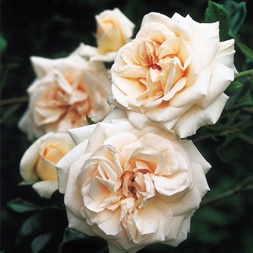Цветение-повторноцветущая Penny Lane — это новый сорт плетистых роз от Харкнесса, который отличается своими красивыми махровыми цветками старинной формы. Цветки абрикосового оттенка в центре выгорают до цвета слоновой кости по краям. Окраска нежная, напоминает золотистое шампанское. В начале цветения можно заметить розовые оттенки, но со временем цветки становятся почти белыми. Они крупные, диаметром до 9 см, и долго не увядают. Цветки устойчивы к дождю и ветру. Этот сорт один из самых обильно цветущих среди плетистых роз. В кистевидных соцветиях может быть более 11 цветков. Кисти распускаются постепенно в течение длительного времени, цветение продолжается многие недели. Куст сильнорослый, достигает 3–5 метров в высоту и 2–3 метра в ширину. Плети гибкие, их легко направлять. Сорт выдерживает полутень и холода. Листва тёмно-зелёная, блестящая и обильная. Роза устойчива к заболеваниям.