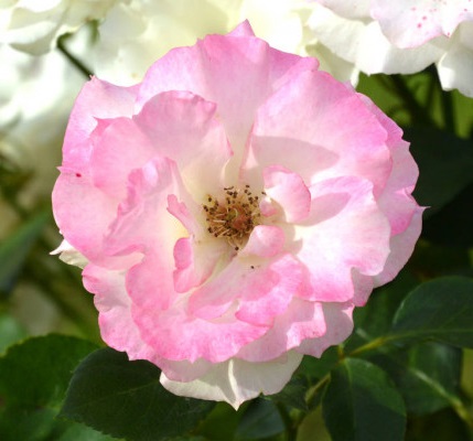Невысокая флорибунда. Цветки нежно-розовые, оригинальной формы. На одном побеге находится букет из несколько бутонов , которые не меняют форму. Цветение обильное. Куст средне -рослый, густой, прямостоячий. Листья зеленые, матовые.