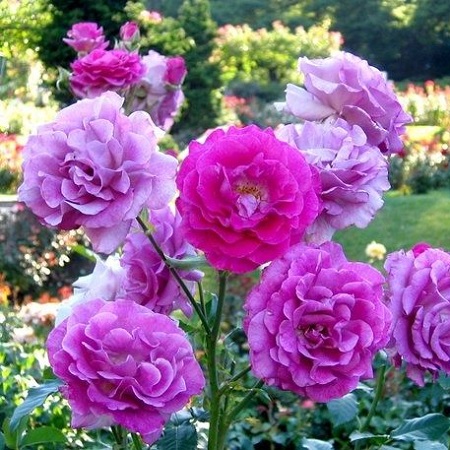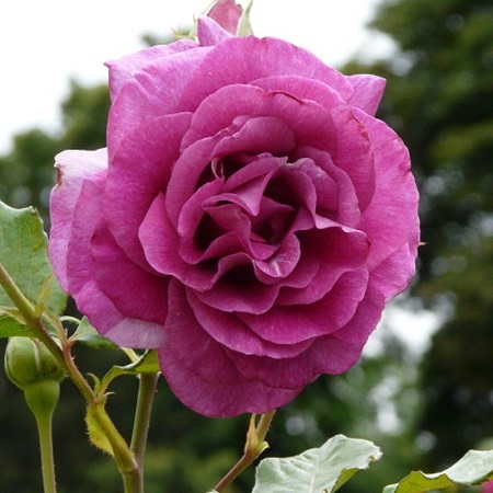 ​Эта красивая чайно-гибридная роза завоевала в Европе множество призов за аромат. Он имеет тона лимонов, гвоздики, розового масла и пряностей. Цветки крупные, с длинными лепестками. Распустившись, они ярко-малиновые, выгорают до фиолетво-розовых и лилово-розовых. Изнанка лепестков бледнее.