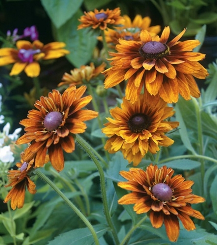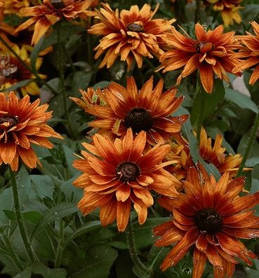 Многолетнее растение, достигает высотой 40-50 см. Стебли прямостоячие, цветки махровые, крупные, орнжевые с темным центром. Цветет в июле-августе 40-45 дней. Название латинское: Rudbeckia hirta Cherokee Sunset Особенности выращивания и ухода: Все рудбекии предпочитают открытые солнечные места. Почвы - обычные садовые, достаточно увлажненные. Чтобы продлить период цветения, можно постепенно удалять отцветшие соцветия. Использование: Идеален для больших рабаток из многолетников, групповых посадок, миксбордеров и срезки.