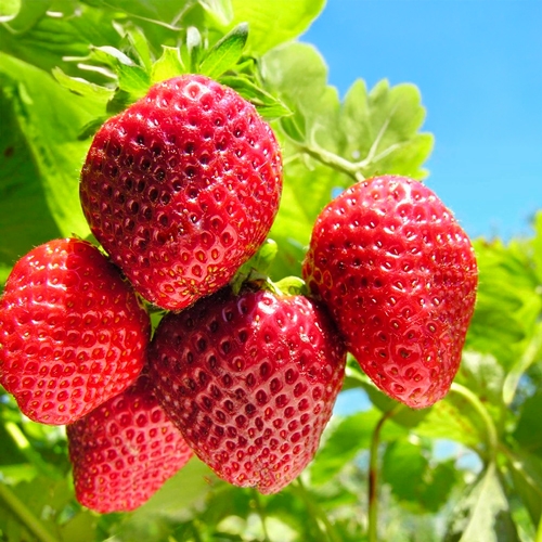 Ягоды очень крупные, массой 40–70 г, отдельные до 100 г, удлинённой конической формы, насыщенно-красного цвета с блестящей кожицей. Мякоть плотная, сочная, сладкая с лёгкой кислинкой, обладает выраженным клубничным ароматом. Сахаристость высокая – до 9–10%. Урожайность – 600–800 г с куста, при интенсивном уходе – до 1,5 кг.