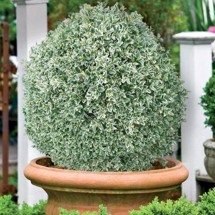Самшит вечнозелёный Elegantissima - великолепное растение с элегантными размерами. Это сорт самшита, который взрастает до 1,5-2 метров в высоту и имеет компактную форму. Его побеги покрыты густыми, блестящими листьями, окрашенными в яркий зеленый цвет с белоснежными краями. Этот контрастный окрас делает Самшит вечнозелёный Elegantissima по-настоящему уникальным и привлекательным растением.