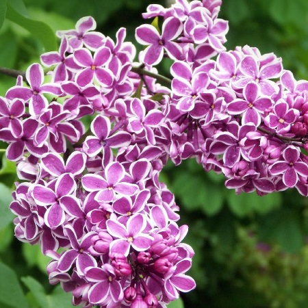 Этот оригинальный сорт не спутаешь с другими. Куст средней высоты, раскидистый. Цветки крупные, пурпурные, с яркой белой каймой по краю лепестка. Соцветия большие и стройные, средней плотности. Сорт позднего срока цветения.