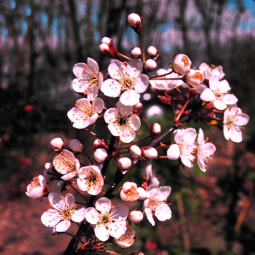 Краснолистная слива «Trailblazer» — это древесно-кустарниковое растение, которое может достигать высоты до 5 метров и иметь крону шириной более 5 метров. Оно характеризуется заметным годовым приростом, увеличиваясь примерно на 30 см в год.