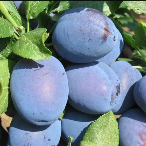 Плоды имеют округло-яйцевидную форму и достигают веса около 50-70 граммов. Кожица тёмная фиолетовая с заметным восковым налётом. Мякоть плода желтая, сочная и плотная. Вкус этой сливы отличный – сладкий со специфической кислинкой, которая добавляет особую изюминку его аромату и вкусу. Внутри плодов находится легко отделяемая косточка среднего размера. Вкус по оценке дегустаторов — 4,7 балла. Сорт выведен немецкими селекционерами