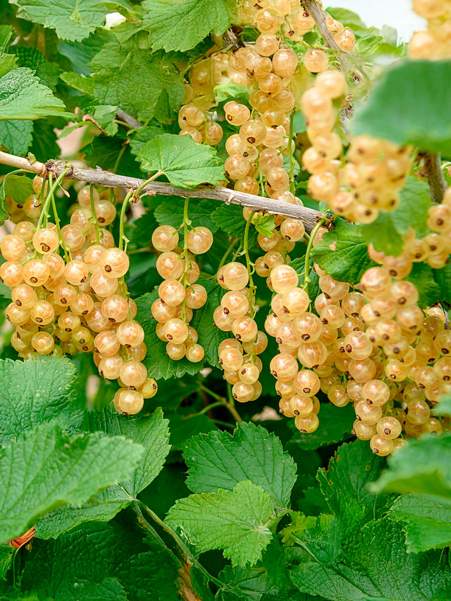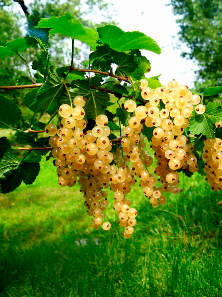 Куст сильнорослый, полураскидистый, высотой 120–160 см и шириной до 150 см. Ягоды прозрачные кремово-белые, 0,7–1 г, собраны в длинные кисти. Вкус сладко-кислый, нежный, без резкости. Подходит для свежего употребления и переработки Купить саженцы Смородины.
