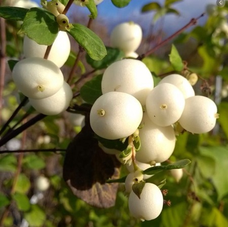 Отличается плотным прямостоячим кустом и обильными маленькими легкими белыми ягодами, которые не сгибают ветки. Высота до 1,5 м. Листья яйцевидно-округлые, темно-зеленые. Цветки маленькие розово-белые, колокольчатые. Плоды белые, до 1 см в диаметре, созревают в конце августа и держатся на растении почти всю зиму. Латинское название: Symphoricarpus Doorenbosii White Hedge Особенности выращивания: Нетребовательный к плодородию и влажности почвы кустарник. Прекрасно переносит затенение. Для сохранения декоративности и во избежание чрезмерного загущения требуется проводить периодическое прореживание кустов. Зимостоек. Применение: Используется в одиночных и групповых посадках. Хорошо смотрится в неформованных живых изгородях.