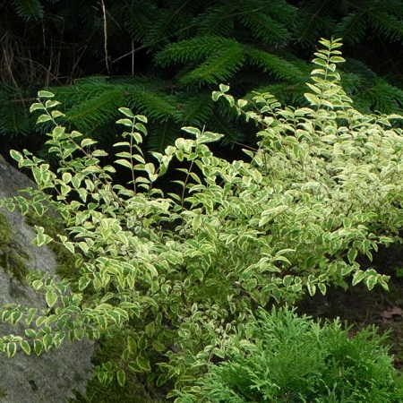 Куст компактный высотой 1,2-1,5м. Листья небольшие, яйцевидные, округлые, до 3,0 см длиной, светло-зеленые, по краю окаймленные неровной желтой полосой. Цветки мелкие, зеленовато-розовые, собраны в кистевидные соцветия. Плоды полушаровидные,созревают в конце августа, пурпурно-красные или коралловые, с сизым налетом, держатся на растении почти всю зиму. Латинское название: Symphoricarpos orbiculatus "Foliis Variegatis" Особенности выращивания: Нетребовательный к плодородию и влажности почвы кустарник. Прекрасно переносит затенение. Для сохранения декоративности и во избежание чрезмерного загущения требуется проводить периодическое прореживание кустов. Зимостоек. Применение: Используется в одиночных и групповых посадках. Хорошо смотрится в неформованных живых изгородях.