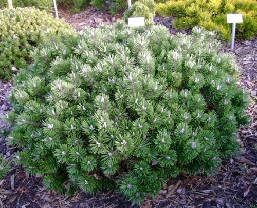 Миниатюрный, плотный, подушковидный хвойный кустарник вырастает всего лишь до 0,5м в высоту и 1м в диаметре. Хвоя густая темно-зеленая летом и буровато-зеленая зимой жесткая короткая. Декоративным элементом зимой выглядят красно-коричневые почки. Растет медленно (3-4 см в год). Крона плотная, округлая (бывает неправильной формы). После десяти лет куст начинает расти вширь. Латинское название: Pinus mugo Humpy Особенности выращивания: Предпочитает солнечное местоположение, морозоустойчива. К почвам не требовательна. Устойчива к промышленным выбросам больших городов. Плохо переносит застойное переувлажнение. Применение: Используется для оформления альпийских горок, вересковых или каменистых садов.
