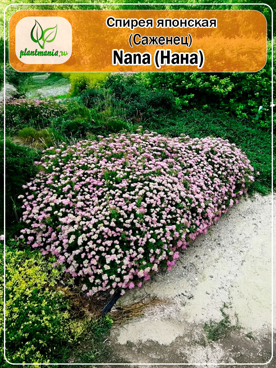 Это компактная, карликовая спирея, которая сохраняет аккуратную подушковидную форму. Взрослый куст достигает 20–30 см в высоту и 40–50 см в ширину, не разваливается и хорошо держит линию бордюра. Весной листва ярко-желто-зеленая, летом — светло-зеленая, осенью окрашивается в жёлтые и оранжево-красные оттенки. С июня по август куст покрыт множеством малиново-розовых щитковидных соцветий — цветение длительное и стабильное.