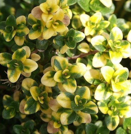 Тимьян "Lemon" обладает приятным лемонным ароматом. Главное действующее вещество - эфирное масло, поэтому растение обладает антиспастическим и дезинфицирующим действием. Известный римский врач Диоскорид предписывал солдатам купаться в настое тимьяна, чтобы набраться силы и энергии, а потом римляне стали использовать тимьян, как пряность. "Lemon" cхож по описанию с тимьяном "Doone valley", с мелкими, яйцевидными или округлыми, зелено-желтыми листочками, с кремовым кантиком. Многочисленные изящные сиренево-розовые цветки, собраны в соцветия. Светолюбив, может переносить затенение, предпочитает легкие, плодородные, хорошо дренированные почвы. Все тимьяны достаточно легко выращиваются в саду. Для их посадки выбирают солнечное возвышенное место, почва не должна быть излишне плодородной. Они засухоустойчивы. Нормально развиваются на слабо кислых почвах, но лучше растутна нейтральных или слабощелочных. В период летних дождей могут страдать от избытка влаги в почве и в воздухе. Все тимьяны легко приживаются на новом месте, поскольку корневая система тимьяна располагается в верхнем слое почвы, место посадки не требует глубокой обработки. Достаточна глубина 10 – 15 см. Место должно быть свободно от сорняков. Во взрыхленную почву добавляют известняковую крошку, доломитовую муку или древесную золу, заглубляют корни и раскладывают стебли на поверхности почвы. Посаженное растение осторожно поливают. Посадку можно осуществлять практически в течение всего сезона.