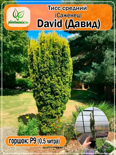 Тисс средний 'David' (Taxus × media 'David') — вечнозелёный хвойный кустарник с узкой колонновидной формой и мягкой хвоей разной окраски. Компактный, медленнорастущий сорт, ценится за устойчивую декоративность и теневыносливость.