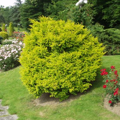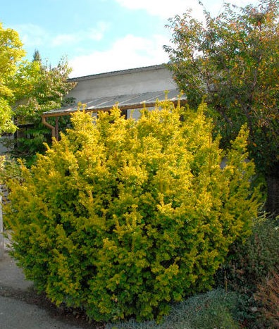 Вечнозеленый кустарник с густой кроной, растущий больше в ширину, с золотистым окрасом кроны, которая становится почти оранжевой в холодный период года. Растет медленно к 10-ти годам достигает высоту 1 м, ширина 1,3 м. Взрослое растение может достигать нескольких метров в диаметре и 3-4 метров в высоту и ежегодно расти на 15-20 см в ширину и на 20 см в высоту. Отличается морозоустойчивостью и ветроустойчивостью.