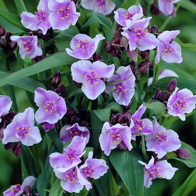 Название латинское: Tradescantia andersoniana 'Billberry Ice' Особенности выращивания: Почва Суглинки - слабокислые гумусные почвы, рыхлые, влажные, но хорошо дренированные Декоративность Во время цветения Морозостойкость Зимостойка Отношение к свету Полутень Применение: длительное время сохраняют декоративность. Хорошо смотрятся у водоемов.