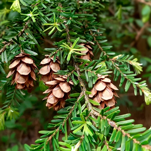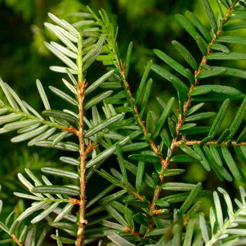 Хвойное вечнозелёное дерево высотой 4–5 м в культуре, крона широкопирамидальная, ветви мягкие, изящно поникающие.. Хвоя мягкая, плоская, тёмно-зелёная сверху и с двумя беловатыми полосками снизу, длиной 1–2 см. Цветёт в апреле–мае, образуя мелкие жёлто-зелёные мужские и красноватые женские цветки. Шишки овальные, мелкие (1,5–2,5 см), сначала зелёные, к осени коричневые.