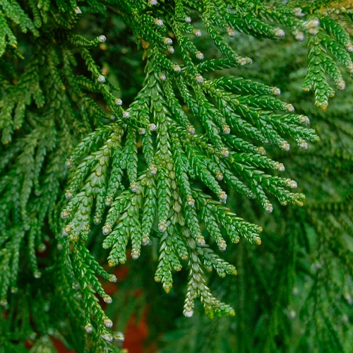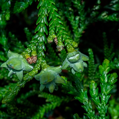 Это вечнозелёное дерево напоминает корейскую тую, его высота обычно составляет около 15 метров. В тёплом климате оно может вырасти до 30 метров, а в более холодных регионах часто выглядит как небольшой кустарник.