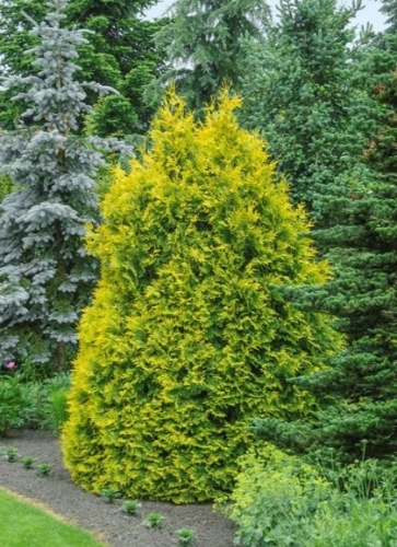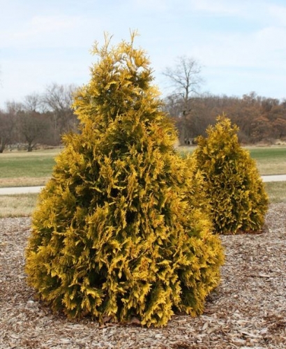 Хвойный вечнозелёный кустарник. Высота взрослого растения достигает 2–2,5 метров, диаметр кроны — до 1 метра. Растёт медленно, годовой прирост составляет около 20 см. Крона у туи «Санкист» густая, компактная, пирамидальной формы. Хвоинки чешуйчатые, золотисто-жёлтого цвета, к зиме приобретают бронзовый оттенок. Латинское название: Thuja occidentalis Sunkist Особенности выращивания и ухода: Предпочитает свежие и влажные, дренированные, достаточно плодородные, суглинистые почвы слабокислой и нейтральной реакции. Хорошо переносит морозы, ветроустойчив, может расти на солнце и в полутени. Применение: Отлично подходит для создания живых изгородей, аллей, одиночных и групповых посадок. Она прекрасно сочетается с другими хвойными и лиственными деревьями и кустарниками, создавая гармоничный ландшафтный дизайн.