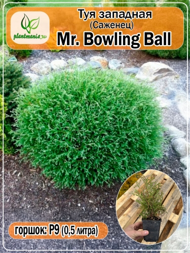 В Plantmania вы можете купить тую Mr Bowling Ball, а также другие саженцы туй, саженцы хвойных растений, саженцы кустарников декоративных и многолетние растения для сада. У нас можно купить плодовые саженцы, саженцы многолетние и саженцы цветов многолетних для сада. Все растения для сада многолетние саженцы выращиваются в контейнерах (ЗКС), что обеспечивает отличную приживаемость и стабильную декоративность без ухода и стрижки.
