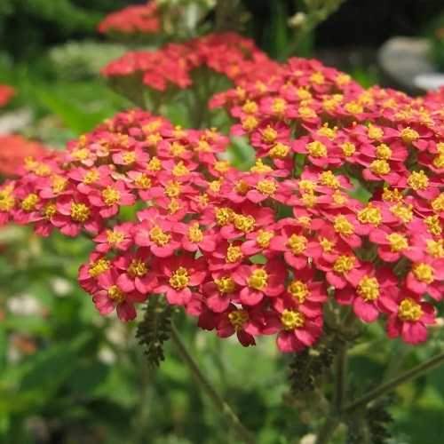 Многолетнее растение высотой 45-60 см. Куст прямостоячий, цветки с лепестками красного перца-паприки маленьким желтым глазком в центре. Листья очередные, зубчатые, перисто-рассеченные. Цветение наступает в июле и длится до 45 дней.