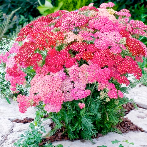 Этот сорт — гибрид. Высота растения во время цветения достигает 60–70 см. Цветение происходит в июле и августе. Корзинки соцветий небольшие, собраны в густые щитковидные соцветия. В палитре сорта представлены нежные оттенки: от белого до кремового, жёлтый, розовый, лососёвый, розовато-лиловый и красный цвета.