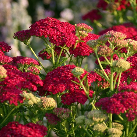 Многолетнее растение высотой 70-80 см. Куст прямостоячий, остается в вертикальном положении. цветки ярко-красные с желтым центром.Листья расположены в очередном порядке, дважды или трижды перисто-рассеченные с многочисленными ланцетовидными сегментами. Цветение с июля по сентябрь. Название латинское: Achillea millefolium Flowerbust Red Shades Особенности выращивания и ухода: Неприхотливое растение. Неплохо чувствует себя на бедных почвах, теневынослив, засухоустойчив, но конечно покажет всю свою красоту на хорошо дренированной почве с максимальным освещением. Хорошо зимует, специального укрытия не требуется. Использование: Рекомендуется для чистых групп, смешанных посадок, низкорослые формы подходят для рокариев.