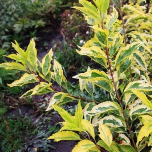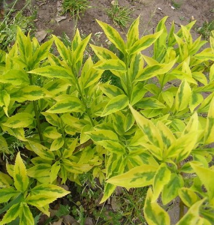 Пестролистным и выделяется своими зубчатыми листьями с желтой каймой. В высоту этот сорт вырастает не более 2 м. Желтоватые цветки появляются в апреле — мае.