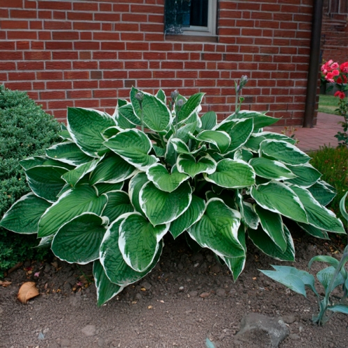 Хоста Francee — классический и популярный сорт, известный своей элегантной и яркой внешностью. Она образует крупный, раскидистый куст высотой до 60 см с сердцевидными тёмно-зелёными листьями, обрамлёнными чёткой неровной белой каймой, которая сохраняет цвет даже в тени. В середине лета хоста выпускает высокие цветоносы с нежными сиреневыми цветками. Растение неприхотливо: предпочитает полутень или тень, влажную плодородную почву и нуждается лишь в минимальном уходе, кроме защиты от слизней. Francee идеально подходит для оживления теневых зон сада, создания контрастных акцентов в бордюрах и сочетания с другими тенелюбивыми многолетниками.