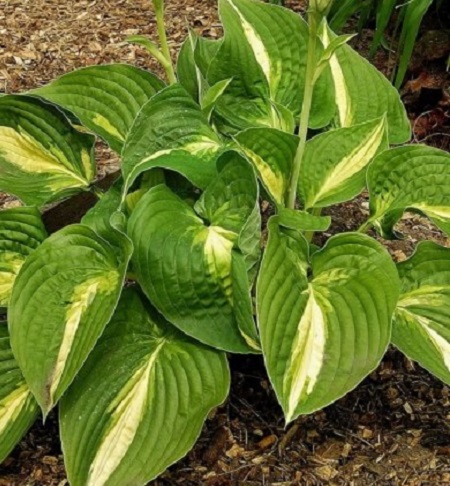 Яркая хоста среднего размера. Высота листьев 50 см, высота цветоносов 60-75 см. Тёмно-зелёная кайма шириной 6 см с серо-зелёными вкраплениями возле кремово-белого центра. Цветки бледно-лавандовые.