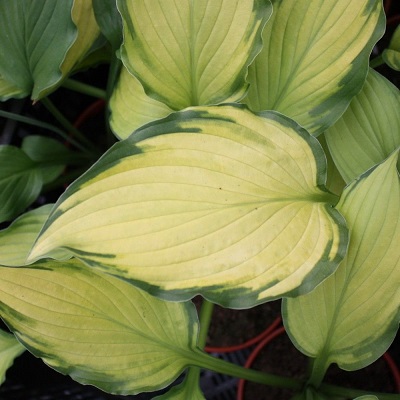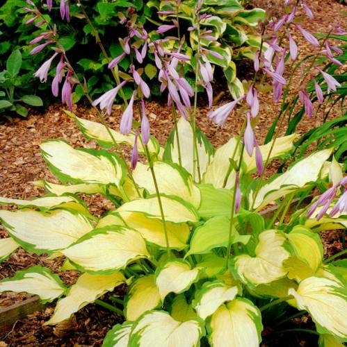Очень красивый  сорт хосты, ширина куста 40-50 см, высота 25-30 см. Листья кремово-жёлтые с ярко-салатовой окантовкой.  Цветоносы поднимаются до 50 см. Цветки светло-лиловые. Цветение приходиться на июль и длиться около трёх недель.