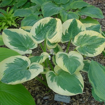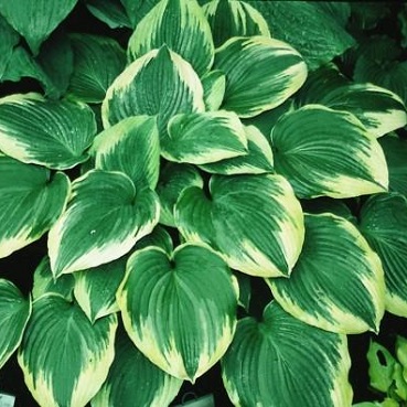 Хоста крупных размеров, ширина куста до 90 см, высота 50-60 см. Листья округлые, плотные, темные сине-зеленые с желто-кремовой каймой, которая становится почти белой в конце сезона. Цветки бледно-лиловые. Цветоносы высокие, до 90 см высотой. Цветение приходиться на июль.