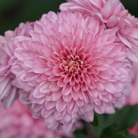 Многолетний травянистый кустарник высотой 50-80 см, около 50 см в диаметре. Цветы до 10 см в диаметре, махровые, крупные, розового цвета. У хризантемы салатово - зелёные, резные листья. Цветёт с конца августа и до заморозков.