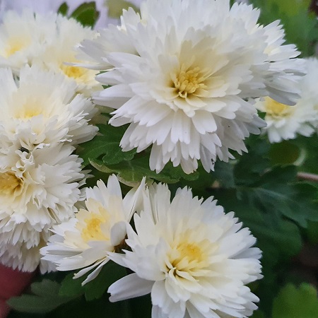 Хризантема мультифлора Коко Шанель – многолетнее травянистое растение семейства Астровые. Куст высотой 40-50 см от природы имеет форму шара. Стебли крепкие, сильноветвистые, густооблиственные. Сорт среднеранний. У хризантемы Коко Шанель листочки темно-зеленые, с изрезанными округлыми краями. Этот сорт имеет махровые цветки белого цвета 4-7 см в диаметре. Цветение длительное - до двух месяцев подряд, с сентября по октябрь.