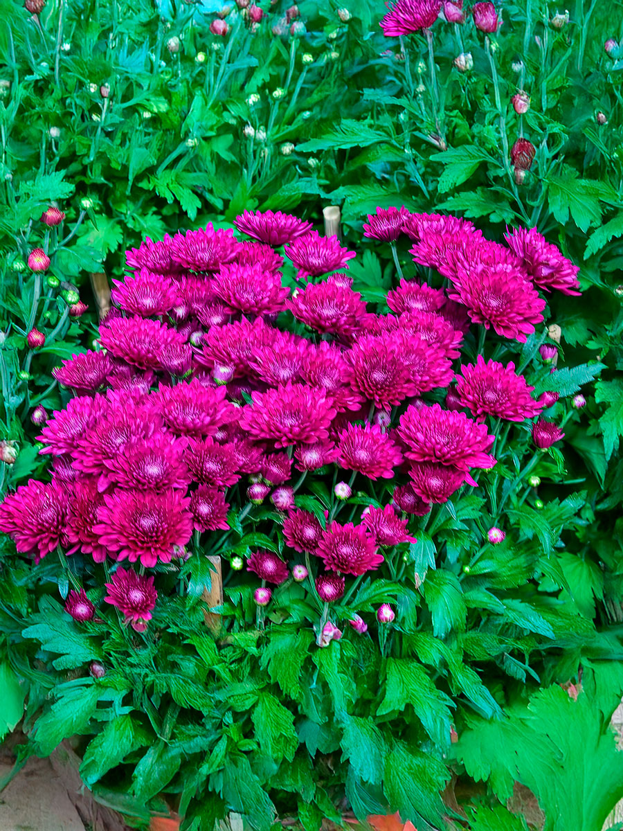 Сорт отличается яркостью окраски и высокой декоративностью до поздней осени. Цветение обильное и продолжительное, а пурпурные соцветия не теряют насыщенности даже в пасмурную погоду. Отличный выбор для осенних цветников и контейнерных композиций.