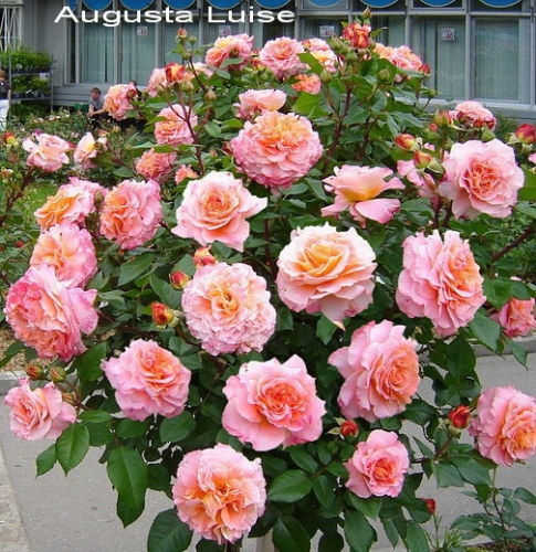 Augusta-Louise цветет очень необычно, цветки огромные, ностальгической формы, густомахровые, переливающегося цвета. Цвет в зависимости от погоды имеет оттенки розового вина, шампанского и персика. Хорошо подходит для срезки.