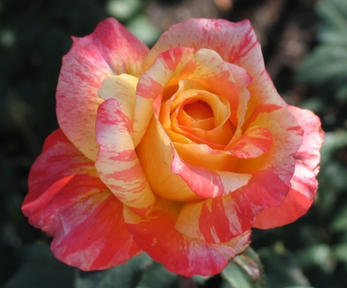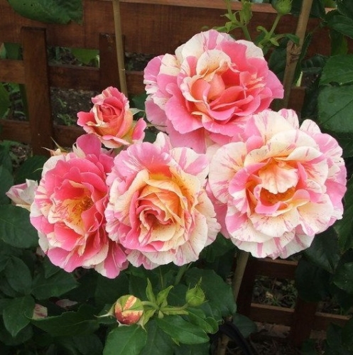 Цветок лимонно-желтый с красными полосками, позднее становятся кремово-розовыми. Цветок крупный, полумахровый (среднее количество 8-25 лепестков), диаметром 8-9 см. Аромат фруктовый, цитрусовый с нотой ванили, бергамота. Растение: высота куст 90-100 см, ширина 50-60 см. Куст прямостоячий. Лист темно-зеленый, средний, глянцевый. Цветение обильное, повторноцветущая