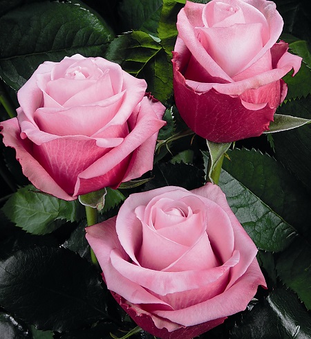 Высокий, плотный бокал этой чайно-гибридной розы распускается в цветок классической формы с тонким, приятным ароматом. Внутренние лепестки розы окрашены в нежные розовые тона, крайние лепестки контрастируют более красными оттенками. Цветок крупный, до 12 см в диаметре, махровый, распускается плавно. Розу этого сорта можно с успехом выращивать для срезки благодаря длительной стойкости срезанного цветка, до 12-14 дней. Куст этого сорта роз ровной формы, с прямыми прочными побегами. Темно-зеленая глянцевая листва выгодно подчеркивает изысканный окрас цветка. Цветение обильное, со слабо выраженными волнами, практически непрерывное.
