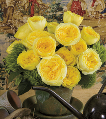 Густомахровые, ностальгической формы, насыщенно-жёлтые цветки с лёгким ароматом.