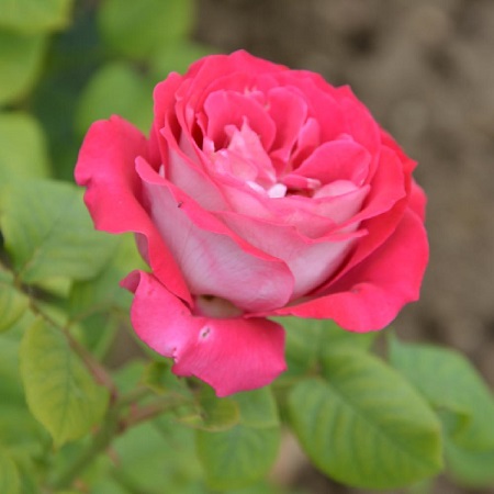 ​Яркая высокая роза с сильномахровыми чашевидными цветами двуцветной окраски - карминово-розовый со сливочно желтым реверсом. Аромат сильный с анисово-перечными нотами. Обладает высокой ремонтантностью. Куст пряморослый с большими матовыми листьями.