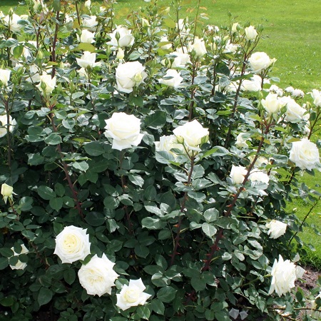 Обильноцветущий куст средних размеров до 1 м высотой с бледно-зеленой, редкой листвой и колючими побегами. Цветки очень крупные, кремово-белые, без запаха. Выносит бедные почвы.